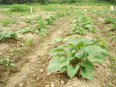 サツマイモの他に瓜も植えられています。